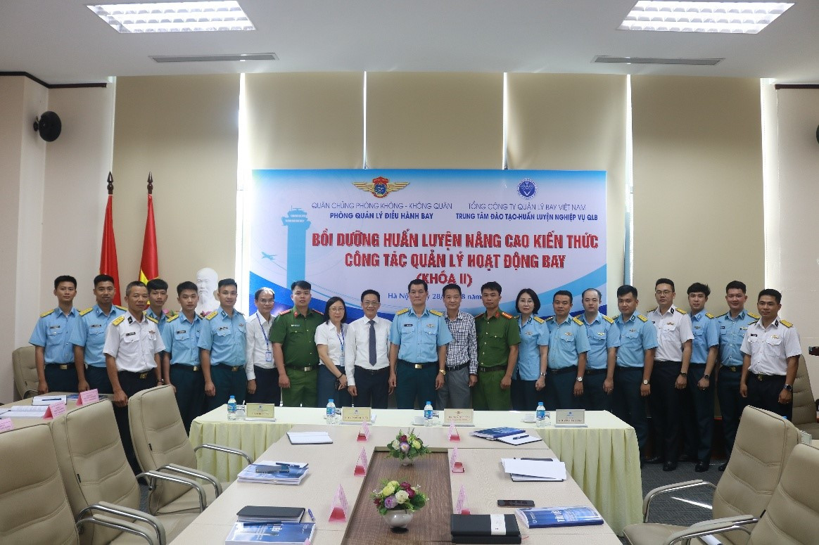Tiếp nối thành công của Khóa 1, Trung tâm Đào tạo – Huấn luyện nghiệp vụ Quản lý bay thuộc Tổng công ty Quản lý bay Việt Nam (VATM) tiếp tục tổ chức Khóa 2 Bồi dưỡng nâng cao kiến thức quản lý hoạt động bay hàng không dân dụng cho lực lượng điều hành bay Không quân toàn quân và Không quân Công an nhân dân. Khóa học diễn ra từ ngày 28/7 đến ngày 01/8/2025 tại trụ sở Trung tâm Đào tạo - Huấn luyện nghiệp vụ Quản lý bay, với mục tiêu tiếp tục nâng cao trình độ chuyên môn, tăng cường khả năng phối hợp giữa lực lượng điều hành bay quân sự và dân sự trong tình hình mới. Khóa học có sự tham gia của 26 học viên, gồm các cán bộ đến từ Quân chủng Phòng không - Không quân, Quân chủng Hải quân, Binh đoàn 18 thuộc lực lượng Không quân toàn quân và Trung đoàn 32 Bộ Tư lệnh Cảnh sát cơ động thuộc lực lượng Không quân Công an Nhân dân. Mục tiêu khóa học là trang bị và cập nhật kiến thức về quản lý hoạt động bay hàng không dân dụng cho các cán bộ tham gia huấn luyện. Các học viên tham gia khóa học Sáng ngày 28/7/2025, lễ khai giảng khóa học diễn ra trang trọng với sự tham dự của ông Nguyễn Đình Tuấn - Giám đốc Trung tâm Đào tạo - Huấn luyện nghiệp vụ Quản lý bay và Đại tá Dương Ngọc Lâm - Trưởng phòng Quản lý điều hành bay, Quân chủng Phòng không - Không quân. Ông Nguyễn Đình Tuấn – Giám đốc Trung tâm Đào tạo – Huấn luyện NVQLB phát biểu tại lễ khai giảng Phát biểu tại buổi lễ, ông Nguyễn Đình Tuấn nhấn mạnh vai trò quan trọng của việc bồi dưỡng, nâng cao trình độ cho lực lượng điều hành bay quân sự trong tình hình mới. Ông khẳng định, với đặc điểm phức tạp của vùng trời Việt Nam và yêu cầu ngày càng cao trong công tác phối hợp điều hành bay giữa các lực lượng, việc nâng cao năng lực đội ngũ cán bộ không chỉ phục vụ hiệu quả các nhiệm vụ thường xuyên, mà còn là yếu tố then chốt trong việc đảm bảo thành công cho các sự kiện chính trị - quốc phòng trọng điểm. Đặc biệt, trong năm 2025, công tác huấn luyện này càng có ý nghĩa cấp thiết, khi cả nước đang hướng tới lễ kỷ niệm 80 năm Cách mạng Tháng Tám và Quốc khánh 2/9 - sự kiện A80. Đây là hoạt động có quy mô lớn, mang tầm vóc quốc gia, yêu cầu tuyệt đối về an toàn, chính xác trong mọi hoạt động, trong đó có các nhiệm vụ bay biểu dương lực lượng. Việc chuẩn bị lực lượng điều hành bay quân sự có trình độ chuyên môn cao, am hiểu sâu sắc về hiệp đồng dân sự - quân sự và xử lý tình huống thực tế chính là nền tảng bảo đảm an toàn bay, góp phần quan trọng vào thành công trọn vẹn của A80 cũng như khẳng định năng lực quốc phòng trong thời bình. Trong thời gian học tập, học viên được đội ngũ giảng viên của Tổng công ty Quản lý bay Việt Nam giới thiệu các nội dung về: công tác hiệp đồng điều hành bay giữa Hàng không dân dụng và Quân sự; hệ thống thiết bị kỹ thuật bảo đảm hoạt động bay; dịch vụ thông báo tin tức hàng không và các sản phẩm liên quan. Bên cạnh đó, học viên còn được bồi dưỡng kiến thức kết hợp tham quan để hiểu rõ chức năng, nhiệm vụ của Trung tâm Kiểm soát đường dài Hà Nội, Trung tâm kiểm soát tiếp cận tại sân bay Nội Bài, Phòng NOTAM Quốc tế, Phòng Bản đồ - Phương thức bay và Trung tâm cơ sở dữ liệu hàng không.. Ngoài ra, học viên còn được bồi dưỡng chuyên sâu kiến thức về thiết kế phương thức bay, các tiêu chuẩn thiết kế phương thức bay và phương pháp đọc hiểu, nhận biết thông tin trên các sơ đồ phương thức bay. Các học viên tham quan tại các cơ sở đảm bảo hoạt động bay Trong quá trình học tập, học viên chấp hành nghiêm kỷ luật lớp học, tích cực trao đổi với giảng viên, thảo luận sôi nổi về các tình huống thực tế trong phối hợp điều hành bay. Đội ngũ giảng viên đã truyền đạt kiến thức bằng phương pháp linh hoạt, kết hợp giữa lý thuyết và chia sẻ kinh nghiệm thực tiễn, giúp học viên dễ dàng tiếp thu và vận dụng. Kết thúc khóa học, toàn bộ 26 học viên đã hoàn thành tốt bài kiểm tra cuối khóa và được cấp giấy chứng nhận. Kết quả đánh giá cho thấy học viên được tiếp cận, cập nhật và hệ thống hóa những kiến thức chuyên sâu, toàn diện về công tác quản lý hoạt động bay, từ lý luận đến thực tiễn, đặc biệt là trong lĩnh vực xây dựng phương thức bay - một nội dung cốt lõi, mang tính chuyên môn cao và có ý nghĩa đặc biệt quan trọng trong bảo đảm an toàn bay, điều hành bay và nâng cao hiệu quả khai thác không phận quốc gia. Đại tá Dương Ngọc Lâm - Trưởng phòng Quản lý điều hành bay, Quân chủng Phòng không - Không quân phát biểu tại lễ bế giảng Tại lễ bế giảng, Đại tá Dương Ngọc Lâm – Trưởng phòng Quản lý điều hành bay, Quân chủng Phòng không - Không quân đã trân trọng cảm ơn lãnh đạo Tổng công ty Quản lý bay Việt Nam, Trung tâm Đào tạo – Huấn luyện và độ